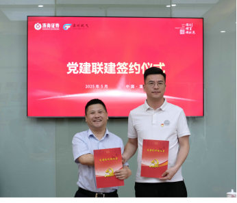 5月30日下午,浙商证券股份有限公司党委与温州市瓯飞开发建设投资集团有限公司党委在温州分公司举办党建联建签约仪式,浙商证券党委委员、副总裁程景东,浙商证券党委委员、工会主席郑谷新,瓯飞集团党委书记、董事长、总经理倪士章,党委委员、副总经理、机关支部书记郑仕科及双方单位党员代表齐聚一堂,共同见证这一证企合作新阶段。